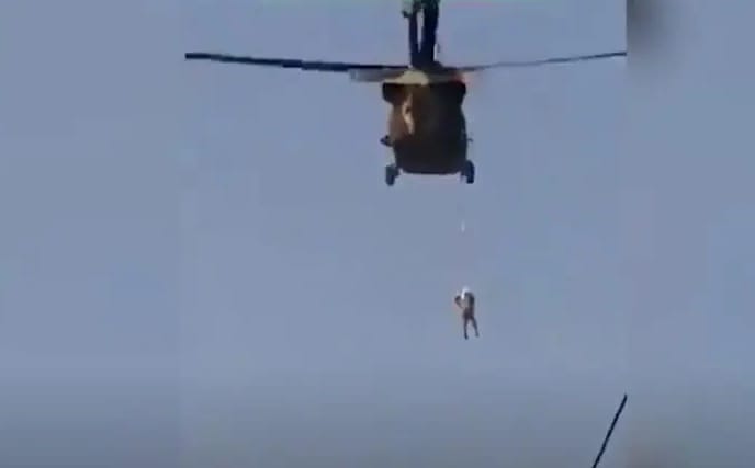 হেলিকপ্টার থেকে ঝুলছে মানুষ, আসলে কী হয়েছে?