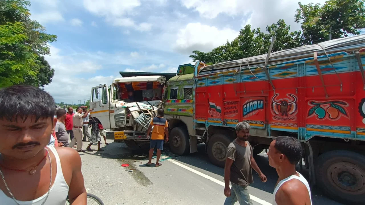 পাথর বোঝাই ডাম্পারের সঙ্গে ট্রাকের মুখোমুখি সংঘর্ষ, আহত ২