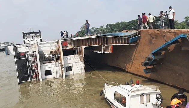 পদ্মায় দুর্ঘটনা, ১৯টি পণ্যবাহী ট্রাক নিয়ে ডুবল ফেরি