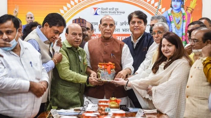 অযোধ্যায় নির্মীয়মান রাম মন্দিরের জন্য জল এল ১১৫ টি দেশ থেকে, গ্রহণ করলেন রাজনাথ