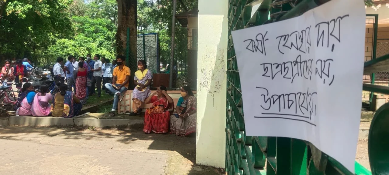 'দড়ি ধরে মারো টান, ভিসি হবে খান খান' স্লোগান বিশ্বভারতীর আন্দোলরত পড়ুয়াদের