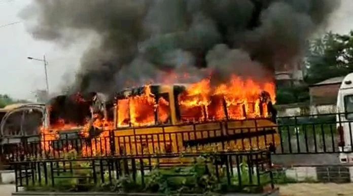 ডুমুরজলা পার্কিং লটে আগুন, দাউ দাউ করে জ্বলে উঠল ৪টি বাস