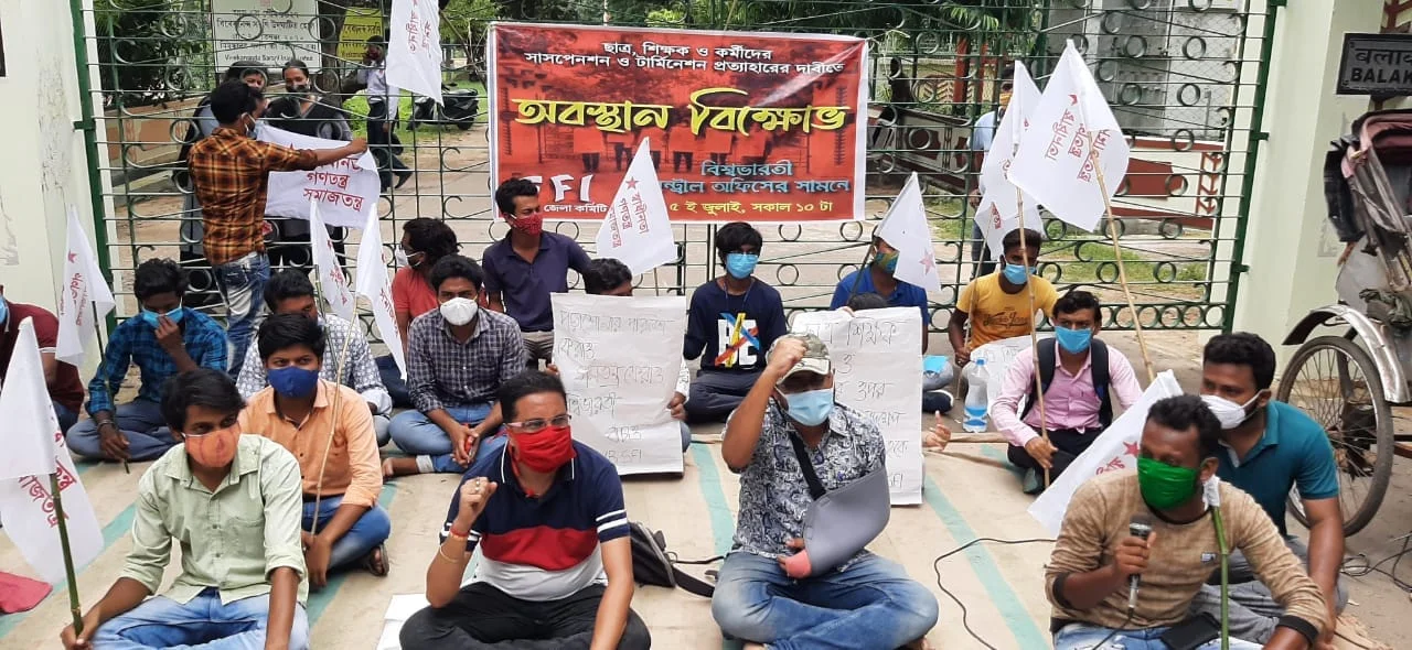 ফি বৃদ্ধি সহ পড়ুয়া সাসপেনশন প্রত্যাহারের দাবিতে বিশ্বভারতীতে রিলে অবস্থান বিক্ষোভে এসএফআই ছাত্র সংগঠন