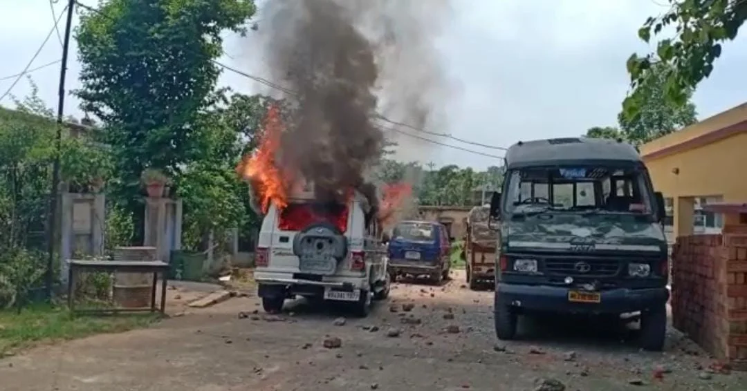 পুলিশি হেফাজতে যুবকের রহস্যমৃত্যু ঘিরে অগ্নিগর্ভ বরাকর, পুলিশের গাড়ি ভাঙচুর, মোটরবাইকে আগুন
