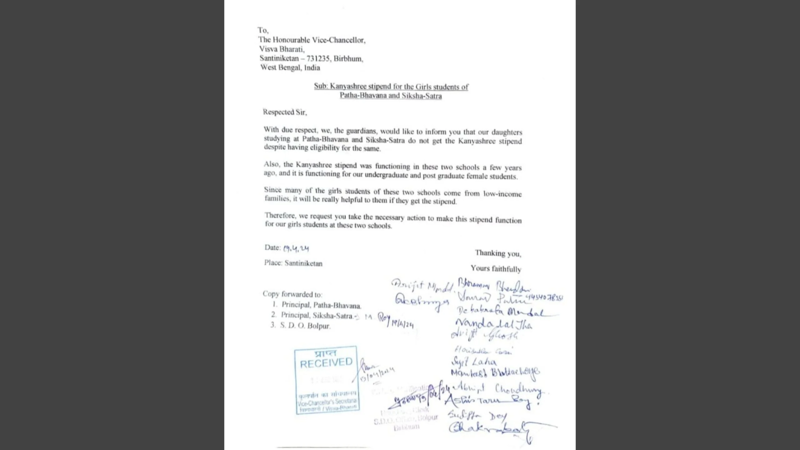 বিশ্বভারতীতে কন্যাশ্রী প্রকল্পের দাবি অভিভাবকদের, চিঠি ভারপ্রাপ্ত উপাচার্যকে
