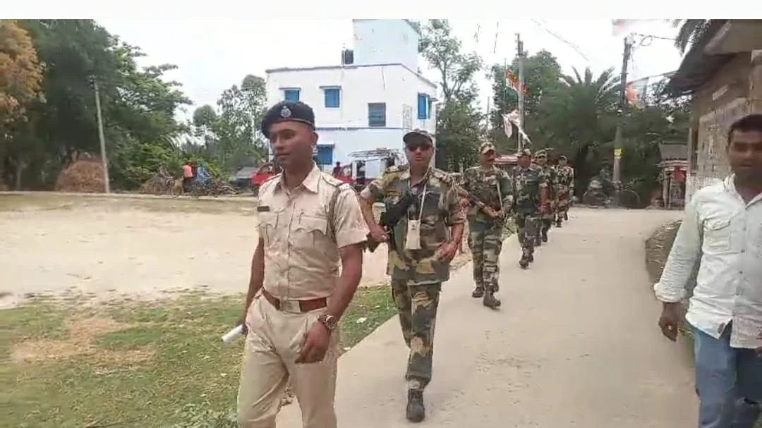 কেন্দ্রীয় বাহিনীর রুট মার্চ সুন্দরবনের রায়দিঘীতে