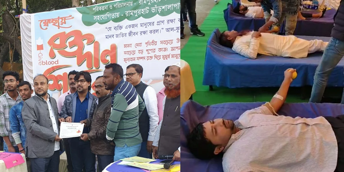 রামপুরহাট শহরে গুণীজন সংবর্ধনা ও রক্তদান শিবির