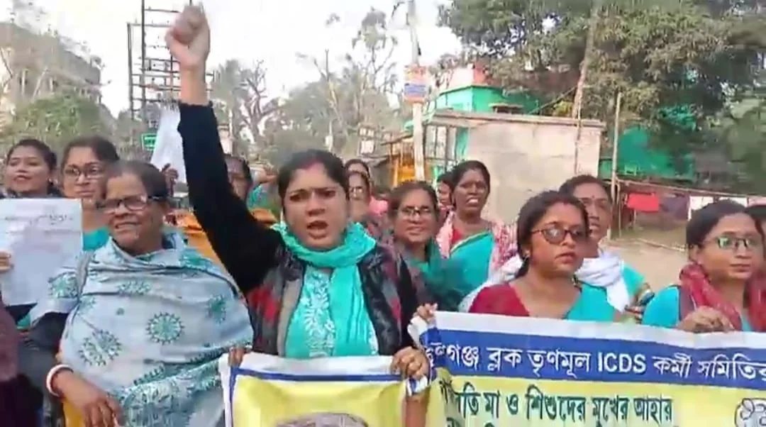 কেন্দ্রের বঞ্চনার বিরুদ্ধে বিক্ষোভ প্রতিবাদ আইসিডিএস কর্মীদের