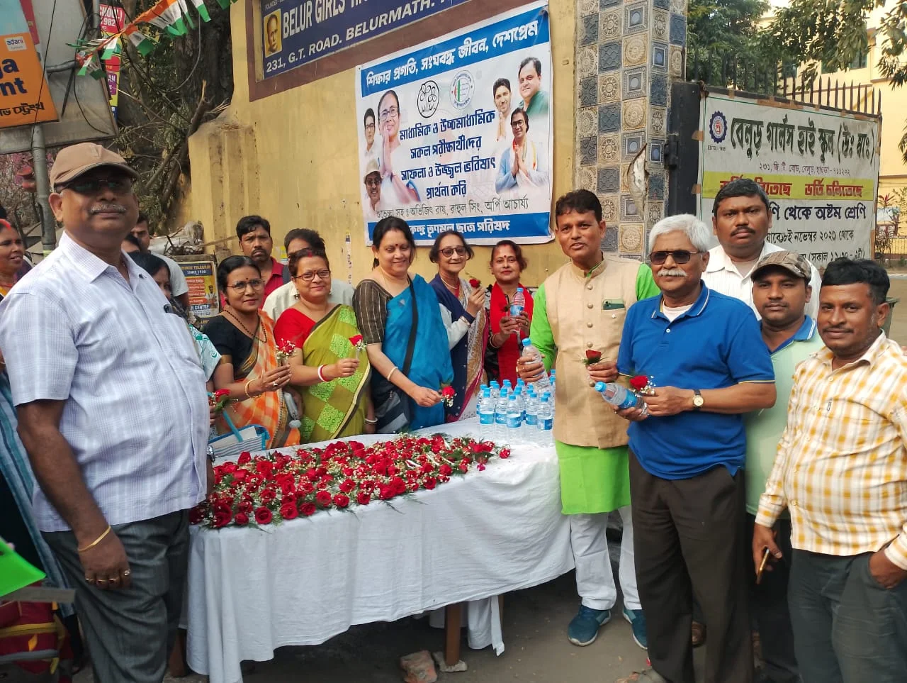 বেলুড় গার্লস হাইস্কুলের সামনে পরীক্ষার্থীদের শুভেচ্ছা প্রাক্তন জনপ্রতিনিধি পল্টু বণিকের