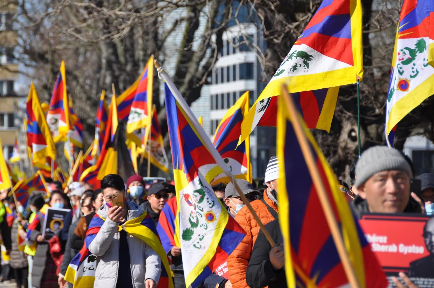 চিনা দূতাবাসের বাইরে বিক্ষোভে সামিল তিব্বতী যুবক ও যুবতীরা