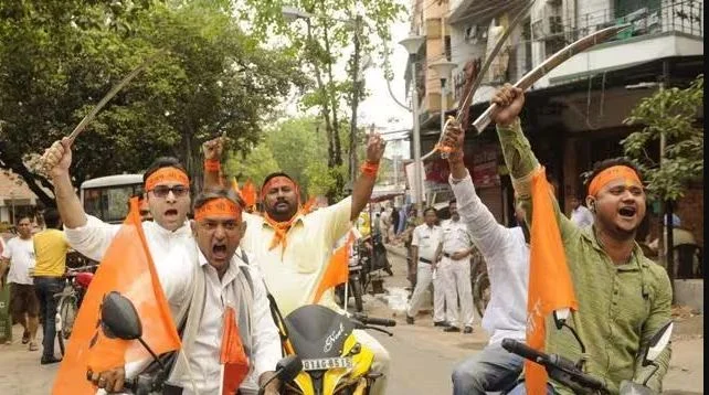 ভিএইচপির বর্ষপূর্তিতে অস্ত্র নিয়ে শোভাযাত্রা