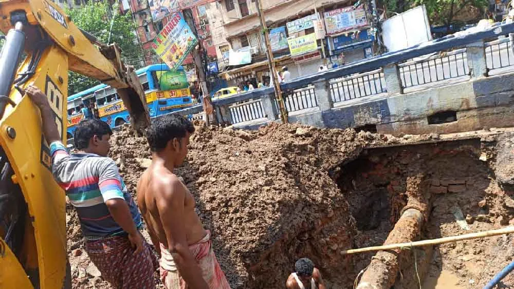 জলের পাইপ ফেটে নামল ধস,বিপত্তি ব্র্যাবোর্ন রোডে, ঘুরিয়ে দেওয়া হচ্ছে যানবাহন