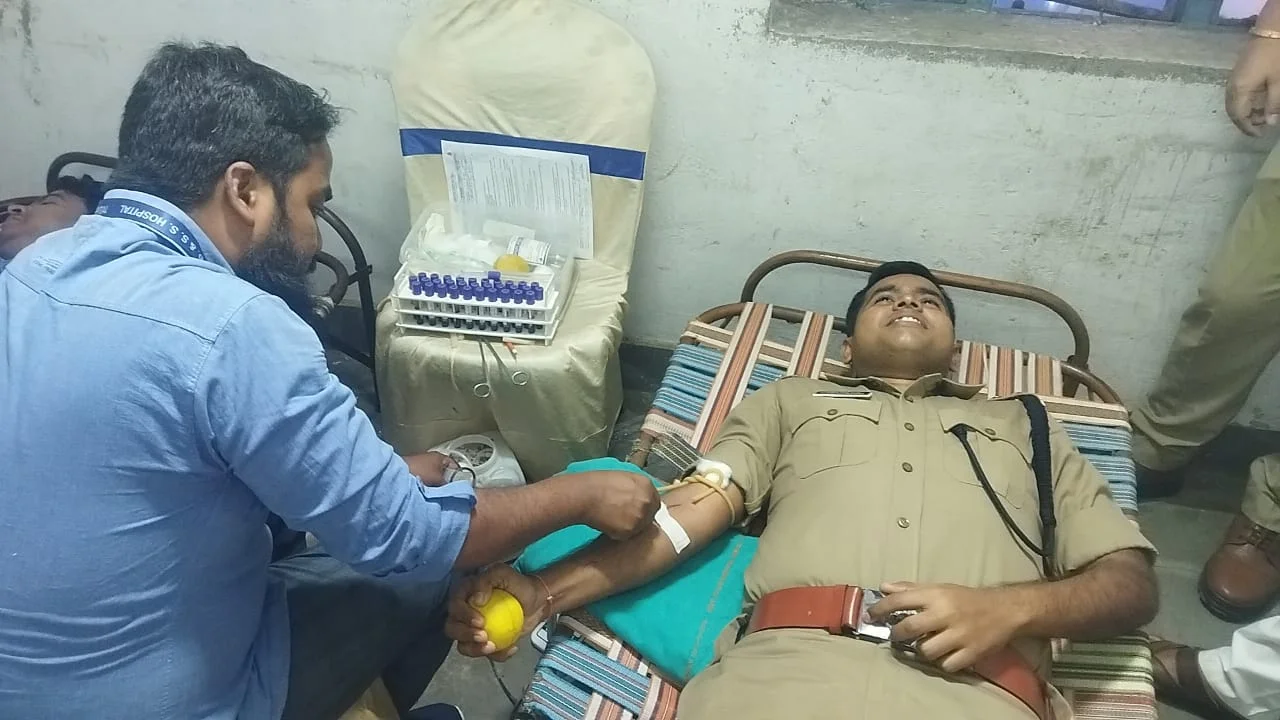 জয়নগর থানার উদ্যোগে স্বাস্থ্য শিবিরে রক্ত দিলেন পুলিশ সুপার