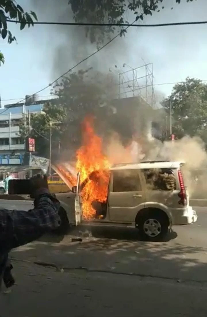 ভরদুপুরে রাজাবাজার ট্রামডিপোর সামনে দাউদাউ করে জ্বলছে স্করপিও,আতঙ্কে ফাঁকা এলাকা
