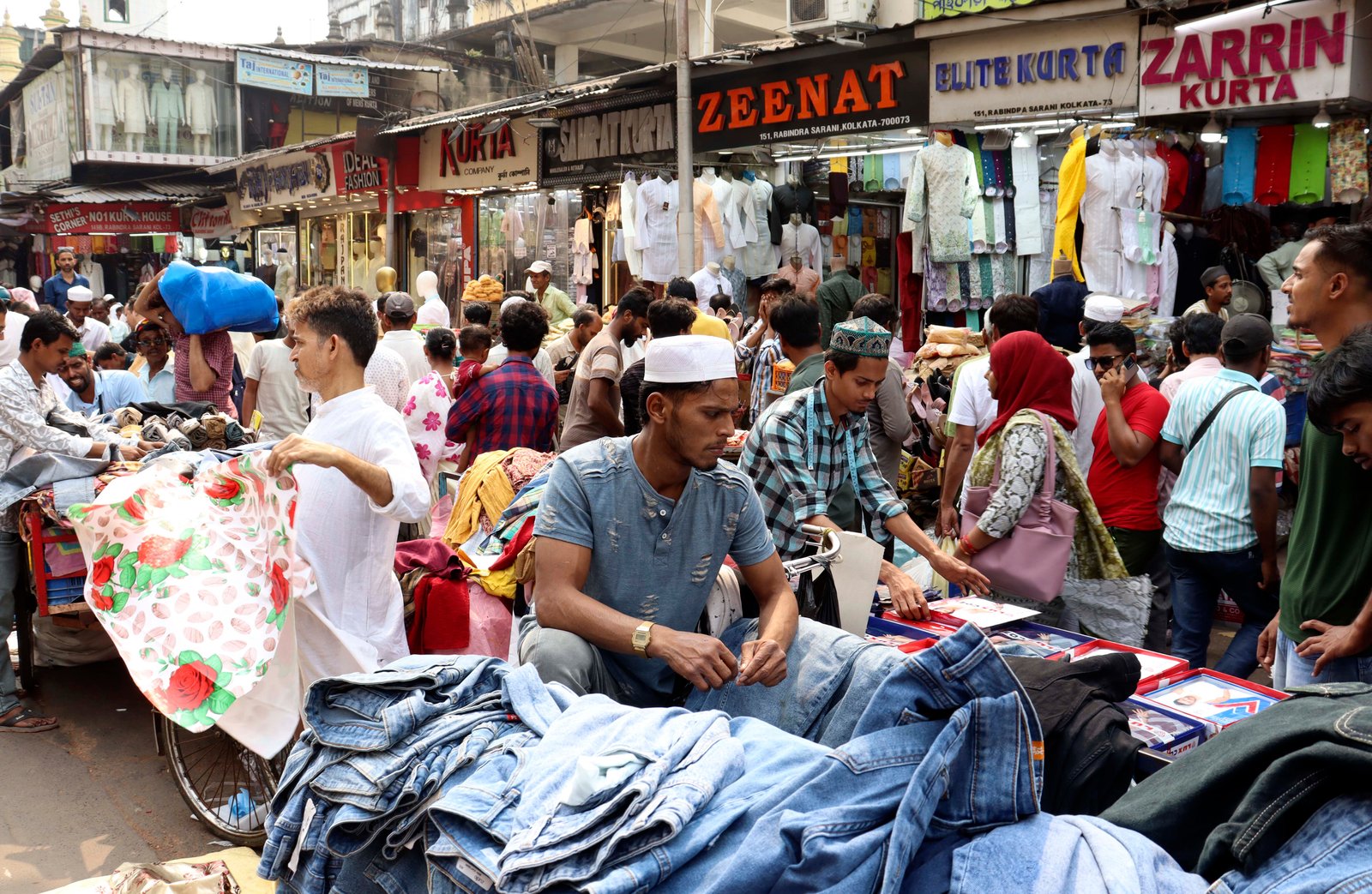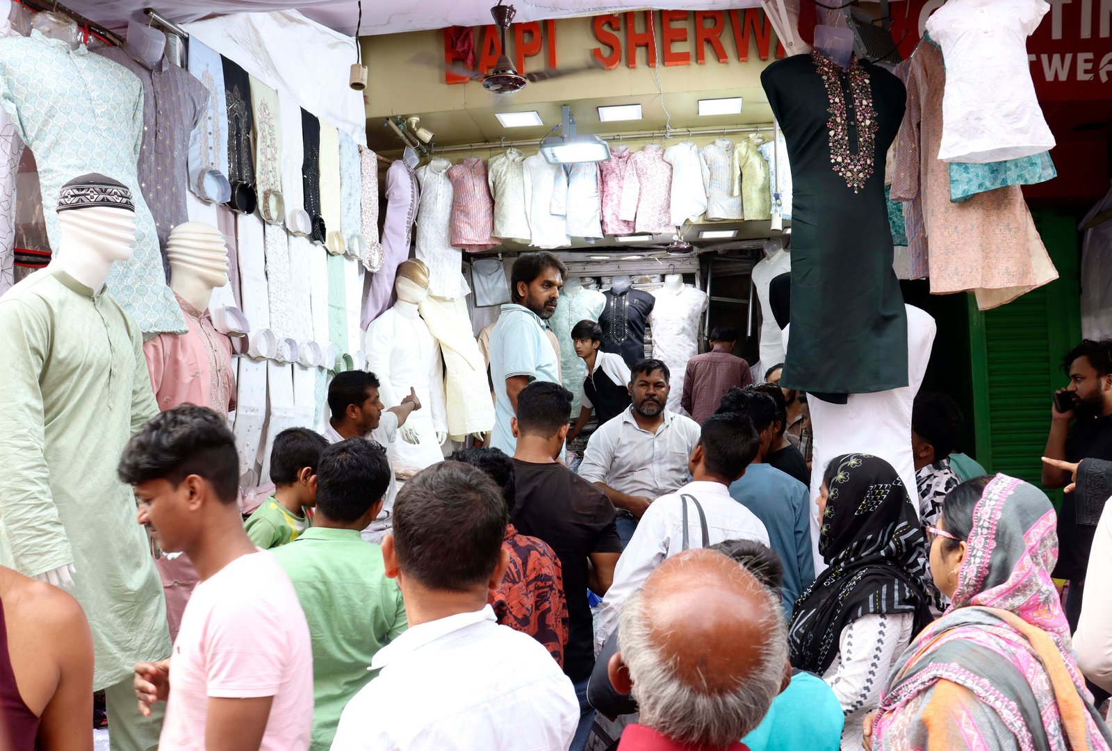 রবীন্দ্রসরণিতে ঈদের আগে পাঞ্জাবি কেনার ভিড়।