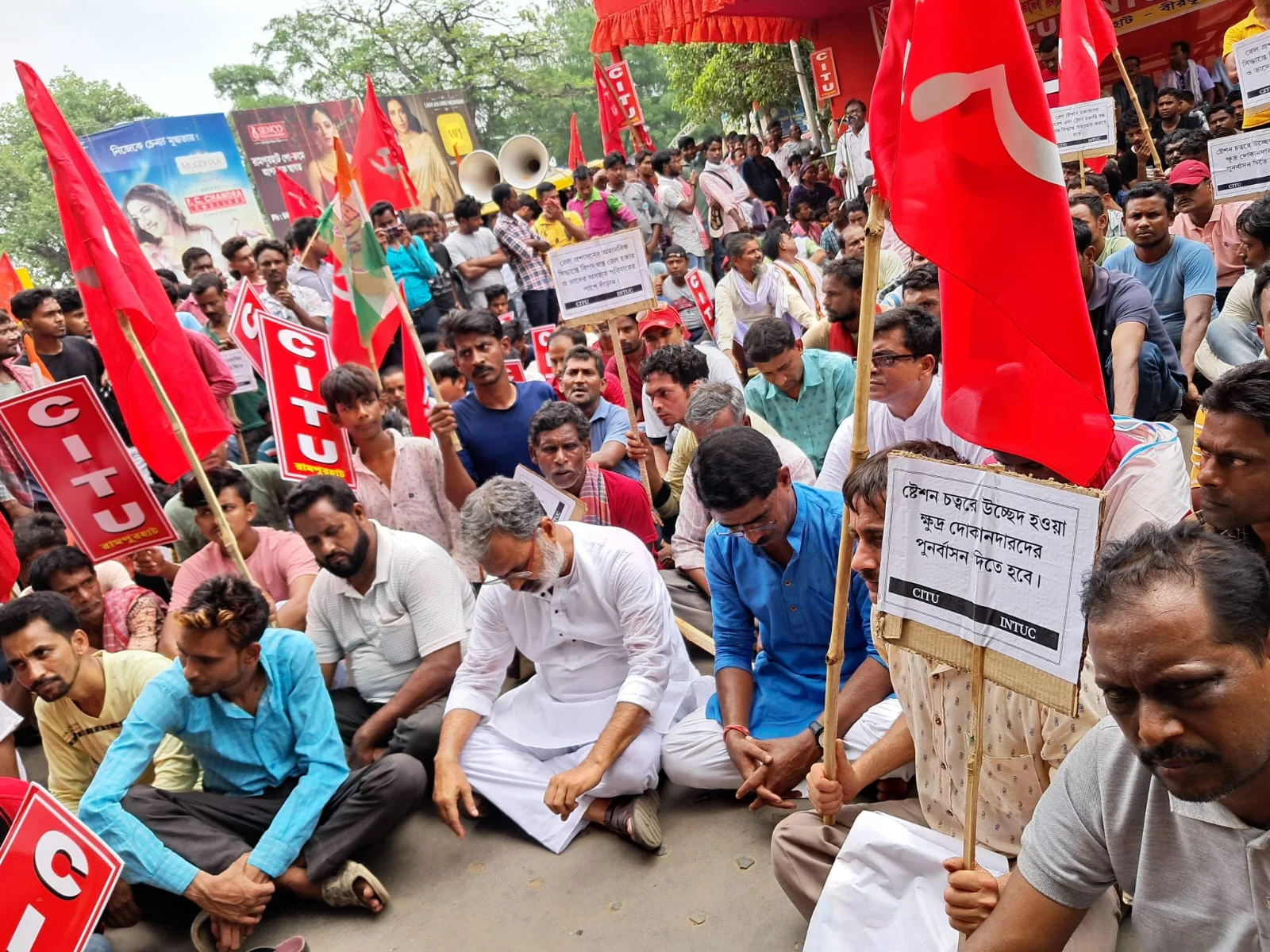হকারদের কাজের দাবিতে ষ্টেশনে অবস্থান বিক্ষোভ বাম কংগ্রেসের