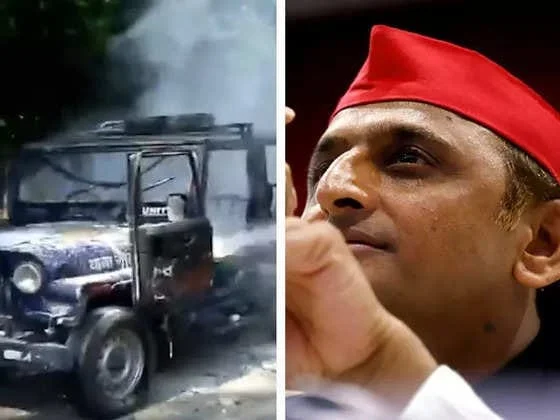 লখিমপুর যাওয়ার পথে আটক প্রিয়াঙ্কা-অখিলেশ, পুলিশের জিপে আগুন ধরালেন বিক্ষোভকারীরা