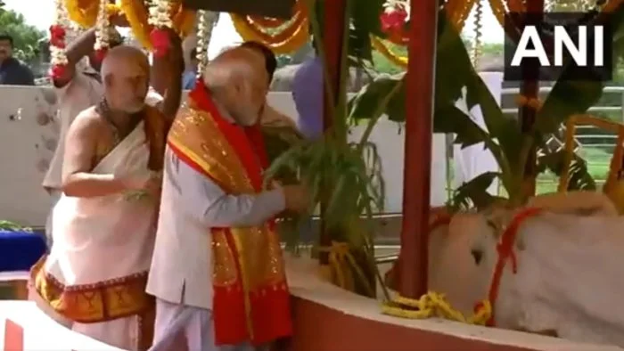 তেলঙ্গানার ভদ্রকালী মন্দিরে গো-সেবায় ব্যস্ত মোদি
