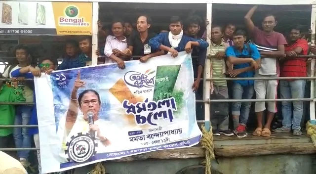 ২১ জুলাইঃ ফেরি পেরিয়ে ধর্মতলা অভিমুখী তৃণমূল কর্মী সমর্থকরা, দেখুন ছবি