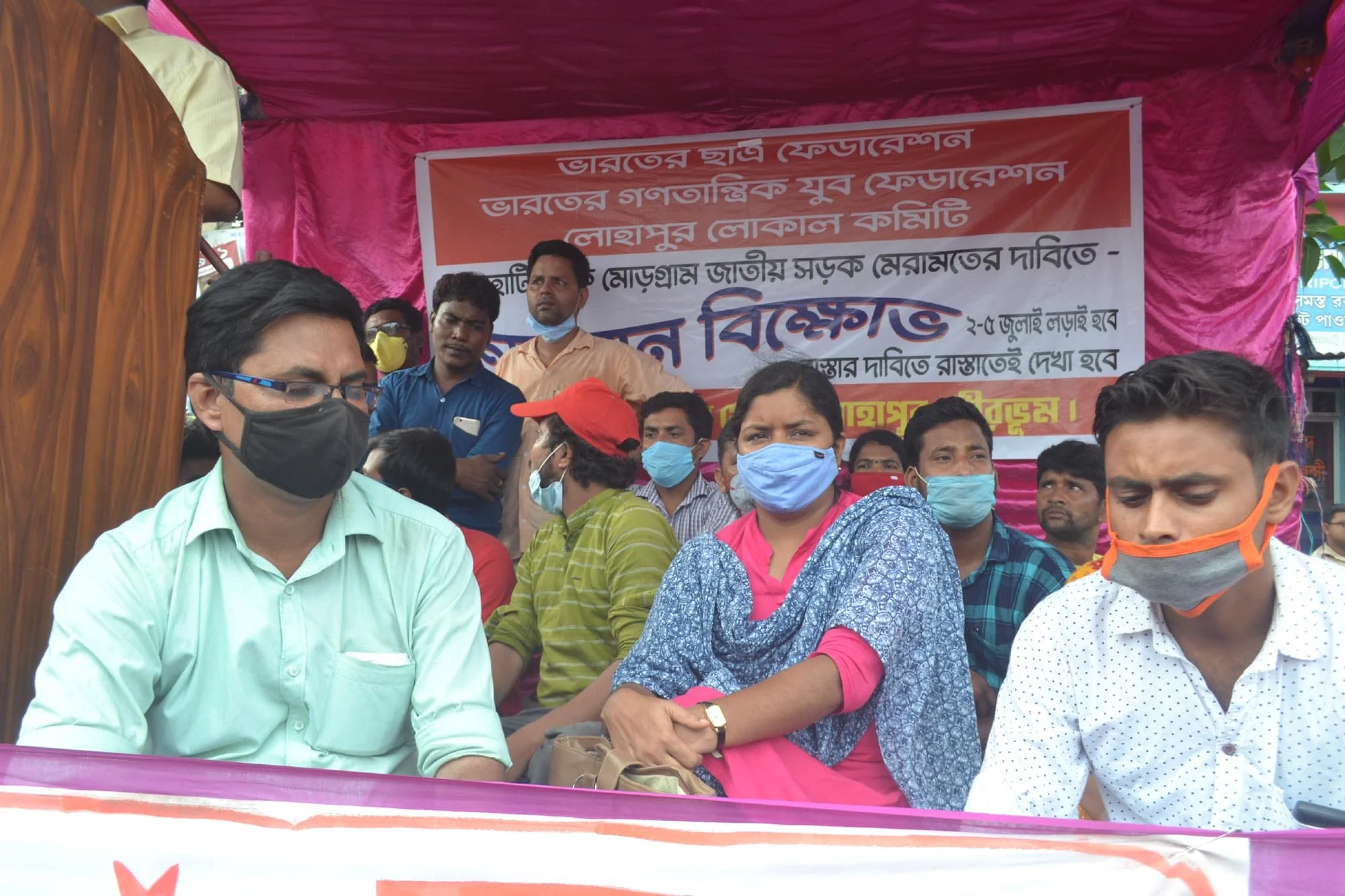 জাতীয় সড়ক সংস্কারের দাবিতে বাম ছাত্র সংগঠনের ধর্ণা