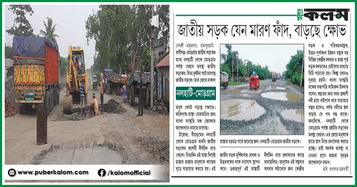 পুবের কলমের খবরের জের,জাতীয় সড়ক সারাই শুরু