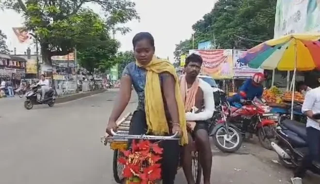 সাইকেল ভ্যান চালিয়ে আহত বাবাকে হাসপাতালে নিয়ে গেল নাবালিকা মেয়ে