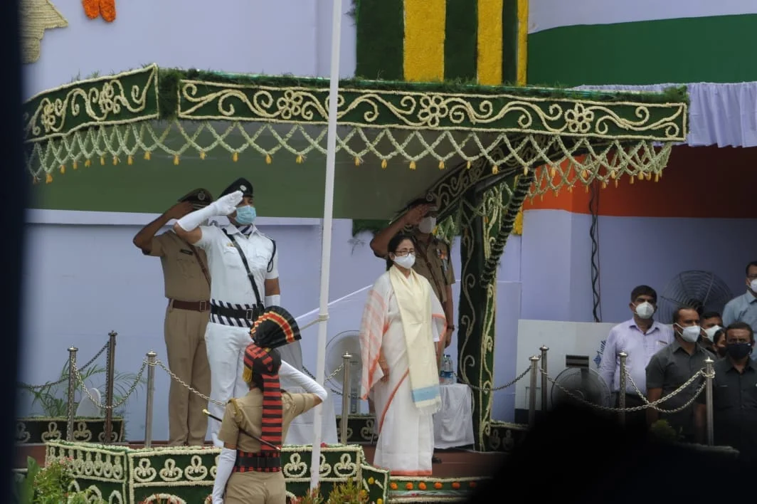 কোভিড প্রোটোকল মেনে রেডরোডে জাতীয় পতাকা উত্তোলন করলেন মুখ্যম...